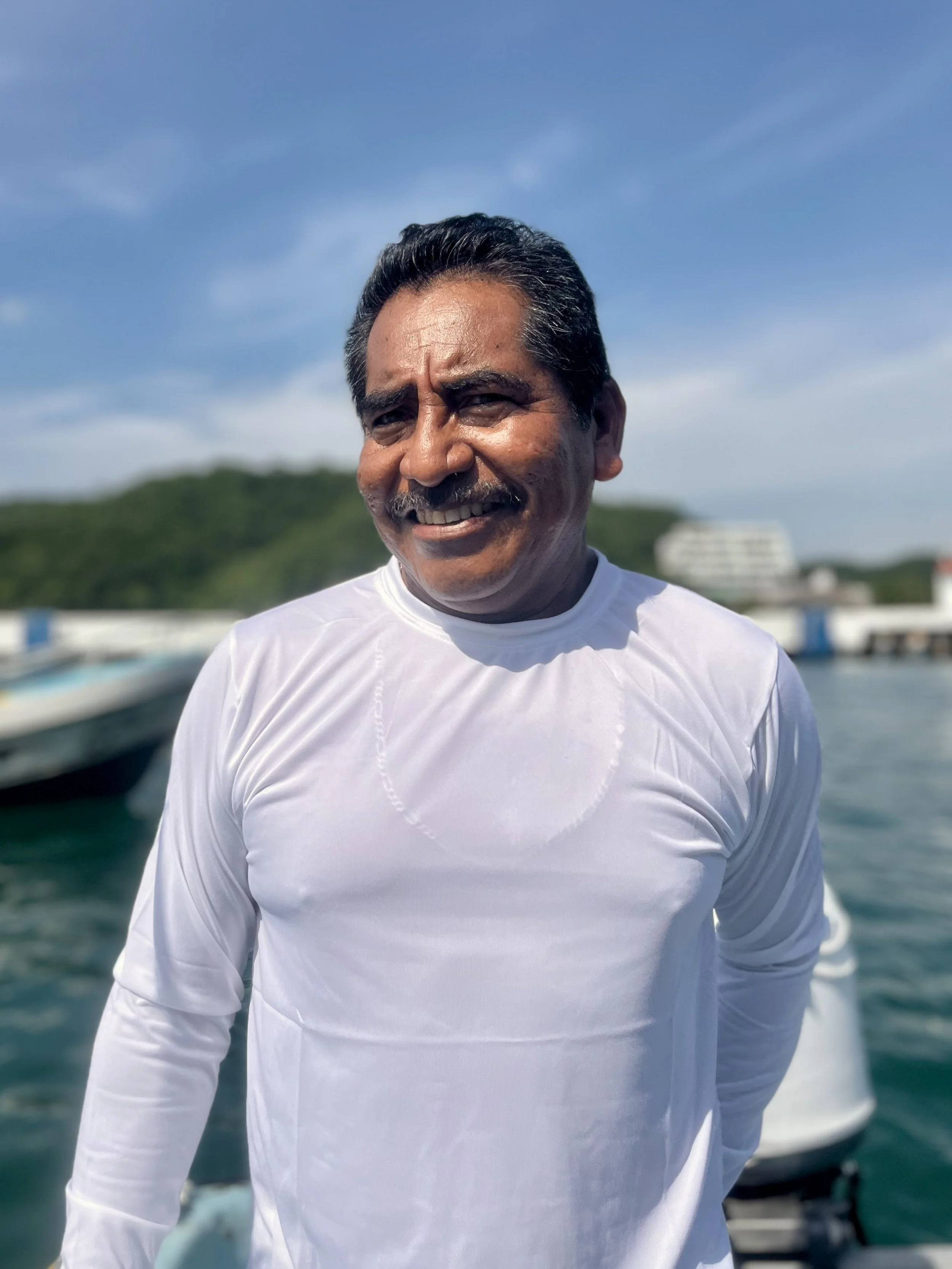 Our Huatulco native guide, with over 30 years of captain experience, Rutilo is one of the best. With his friendly disposition he is always ready to lend a helping hand. From guiding trips to recommendations for anything you are looking for during your stay in the beautiful Bahias de Huatulco. Rutilo is always willing and ready to make your experience with us worthwhile.